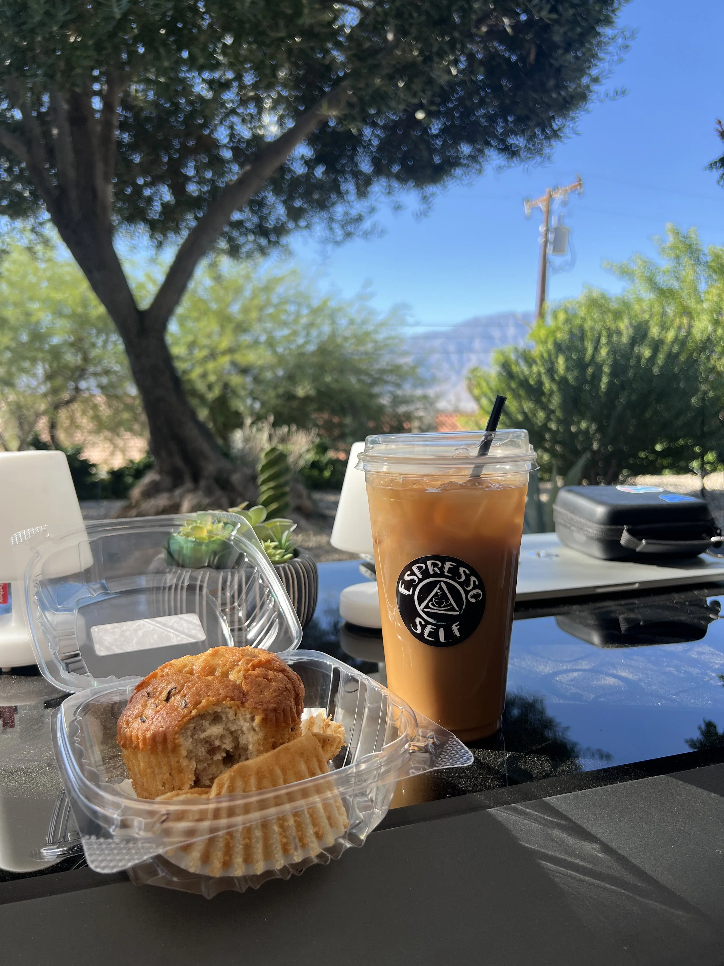 Espresso Self- seasonal brews with fresh muffins from the local bakery; a morning requirement everyday of our stay